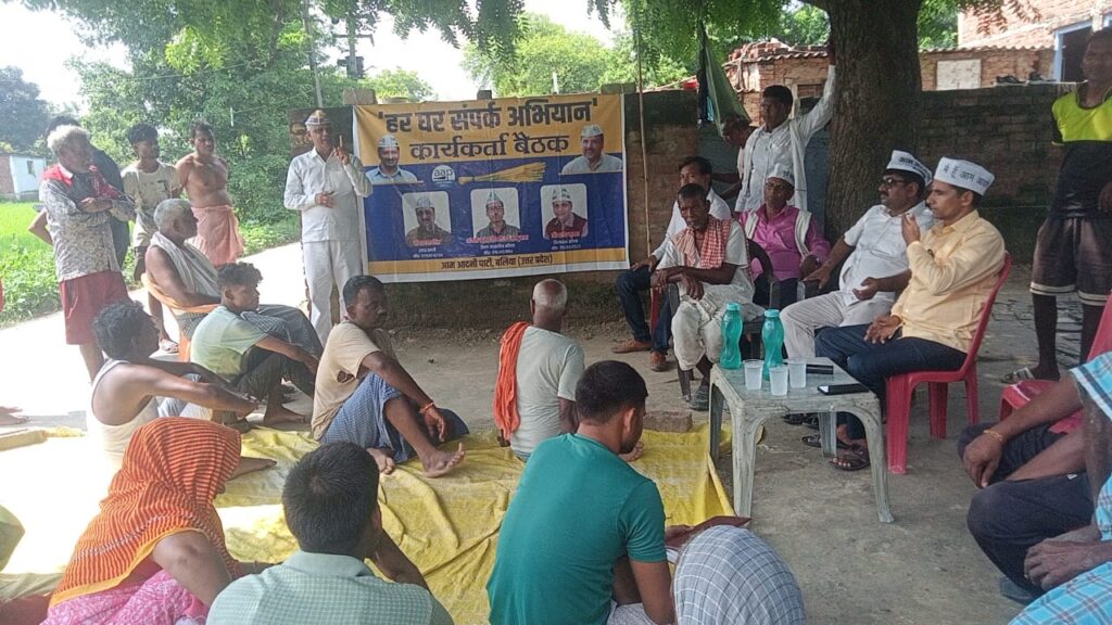 बलिया। आदमी पार्टी कार्यकर्ताओं का ग्राम पंचायत पूरा दलाई तिवारीपुर गांव में अंजनी तिवारी उर्फ झब्बू बाबा जिला महासचिव बलिया के नेतृत्व में घूम-घूम कर रचनात्मक कार्यक्रम का आयोजन किया गया तथा कार्यक्रम के दौरान हर घर संपर्क अभियान के तहत आवश्यक बैठक रखी गई जिसके मुख्य अतिथि जिला अध्यक्ष डॉक्टर प्रदीप कुमार जी उपस्थित रहे । इस दौरान अंजनी तिवारी उर्फ झब्बू बाबा जिला महासचिव ने कहा कि भारतीय जनता पार्टी एक भ्रष्ट जनता पार्टी है जो दलित, शोषित ,पिछड़े तथा अन्य जातियों के साथ सौतेला व्यवहार कर रही है यह मोदी सरकार डबल इंजन की सरकार जो कही जाती है जनता को धोखा देकर अपनी डफली बजाने का काम