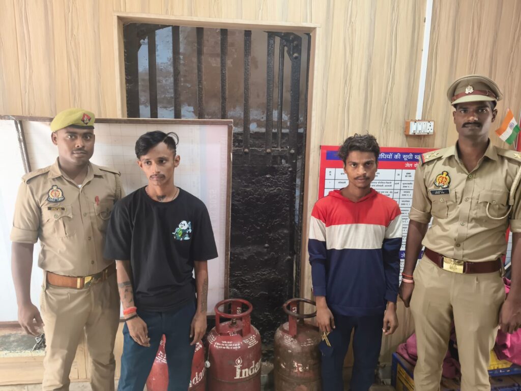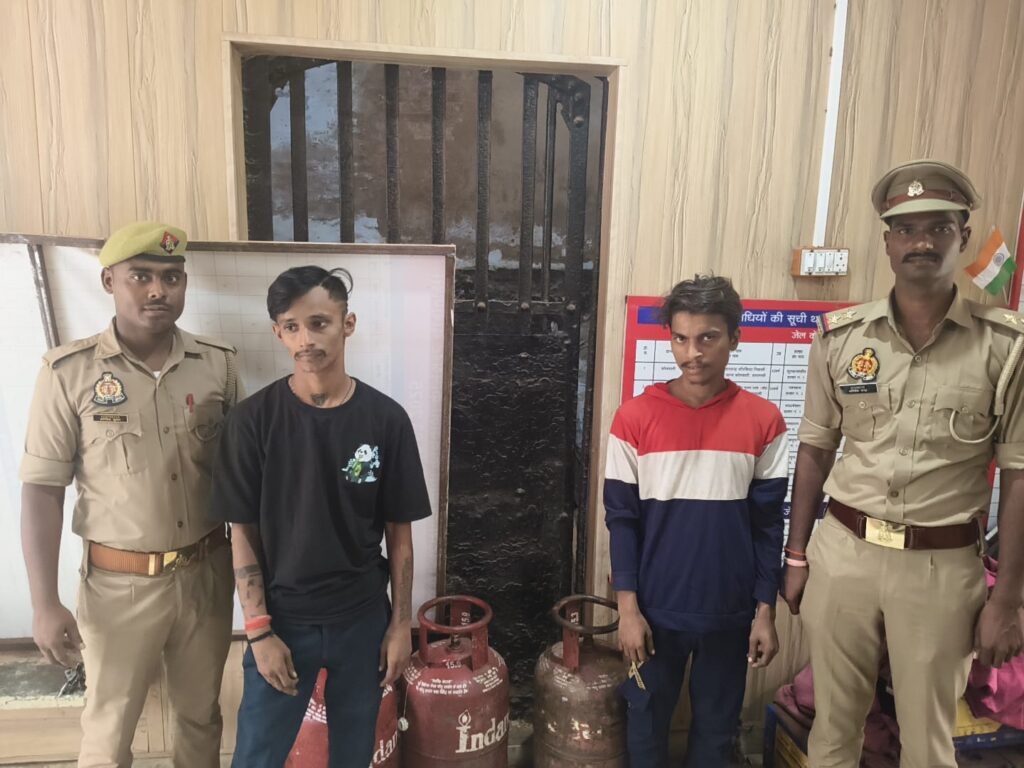 वाराणसी। पुलिस आयुक्त वाराणसी द्वारा अपराधों की रोकथाम तथा चोरी/लूट की घटनाओ के सफल अनावरण एवं वांछित/फरार अभियुक्तों की गिरफ्तारी हेतु चलाये जा रहे अभियान के क्रम में, श्रीमान पुलिस उपायुक्त काशी ज़ोन के निर्देशन में, श्रीमान अपर पुलिस उपायुक्त काशी ज़ोन के पर्यवेक्षण में एवं श्रीमान सहायक पुलिस आयुक्त कोतवाली व प्रभारी निरीक्षक कोतवाली के कुशल नेतृत्व में थाना कोतवाली पुलिस टीम द्वारा दिनांक-08.08.2025 को मुखबिर की सूचना पर मछोदरी पार्क के अन्दर से थाना कोतवाली पर पंजीकृत मु०अ०सं० 155/2025 धारा 303(2) बीएनएस व बढ़ोत्तरी धारा 317 (2) BNS से सम्बन्धित 02 अभियुक्तगण को गिरफ्तार किया गया जिनके कब्जे 03 अदद चोरी के घरेलू गैस सिलेण्डर बरंग लाल, 540 रुपया नगद बरामद किया गया। तथा गिरफ्तारशुदा अभियुक्त के विरुद्ध विधिक कार्यवाही की जा रही है।